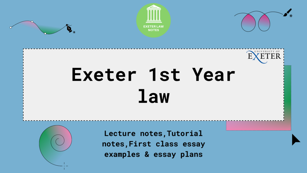 This package contains detailed, colour-coded notes on all compulsory Lectures, Seminars and Essays that you will study in the First year of The university of Exeter Law school.